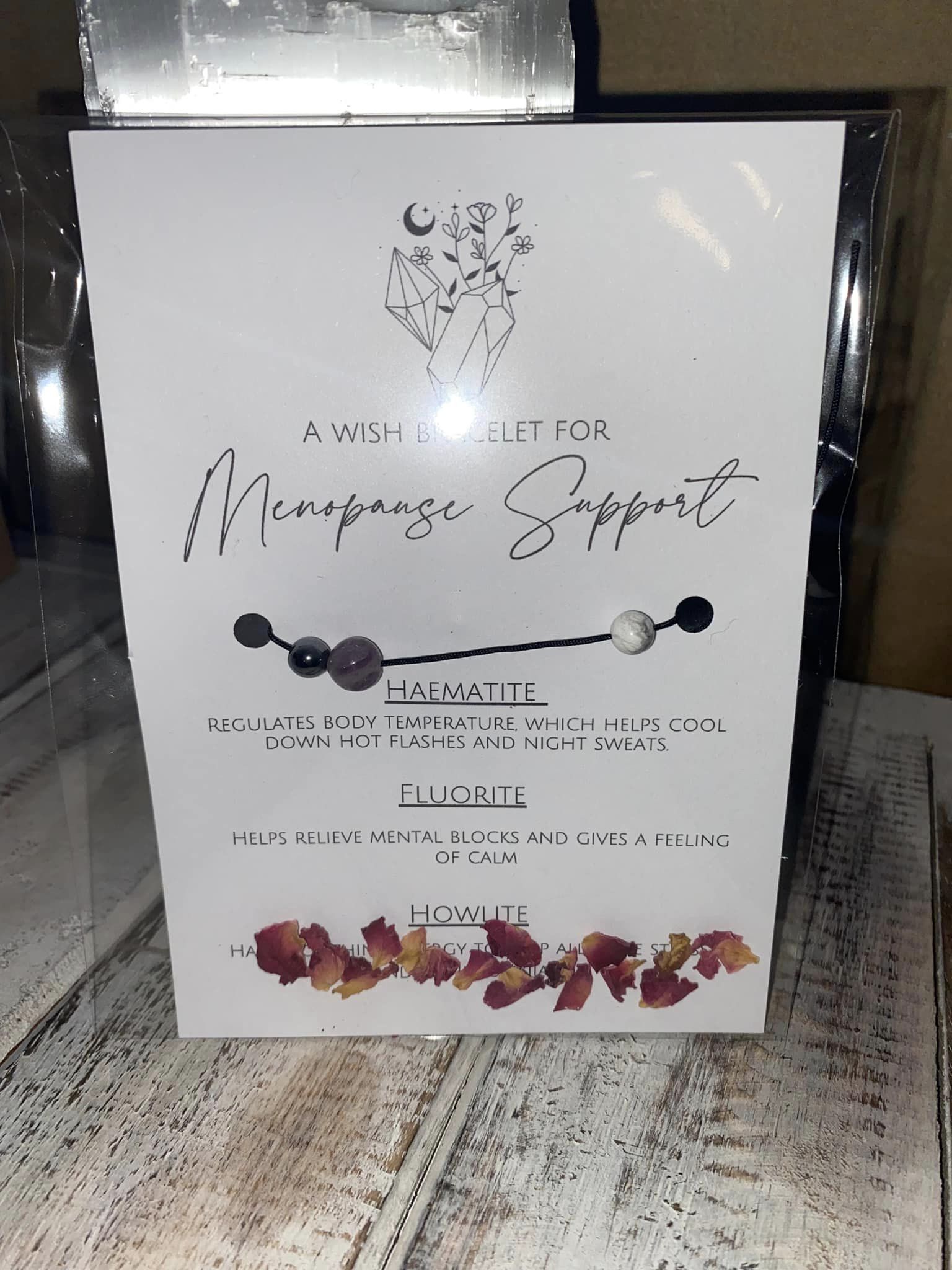 A menopause support bracelet incorporating hematite, fluorite, and howlite crystals can be a thoughtful and very beneficial accessory. Each of these crystals has properties that can offer support during the menopause transition: