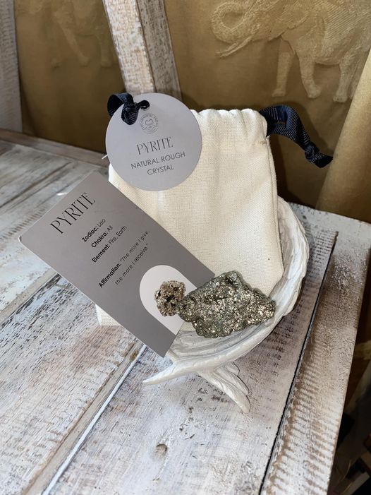 Pyrite healing rough crystal~ also known as fools Gold, this crystal promotes spiritual wealth. Comes in a cotton pouch matching information card.