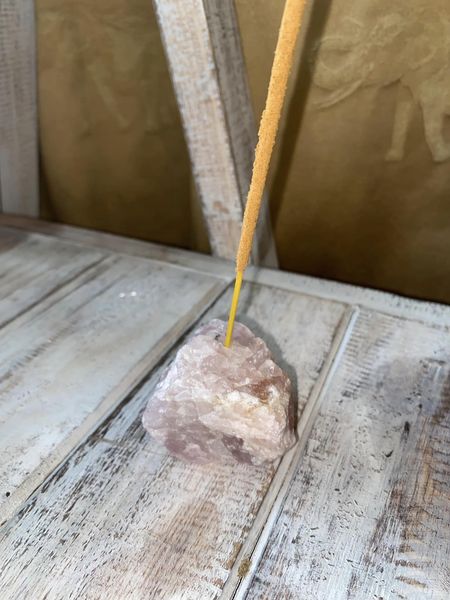 Raw Rose Quartz incense holder ~ Rose quartz is known to promote healing, attract love, and create inner feelings of peace and reassurance. Due to the nature of this stone, size, shape and colour will vary.